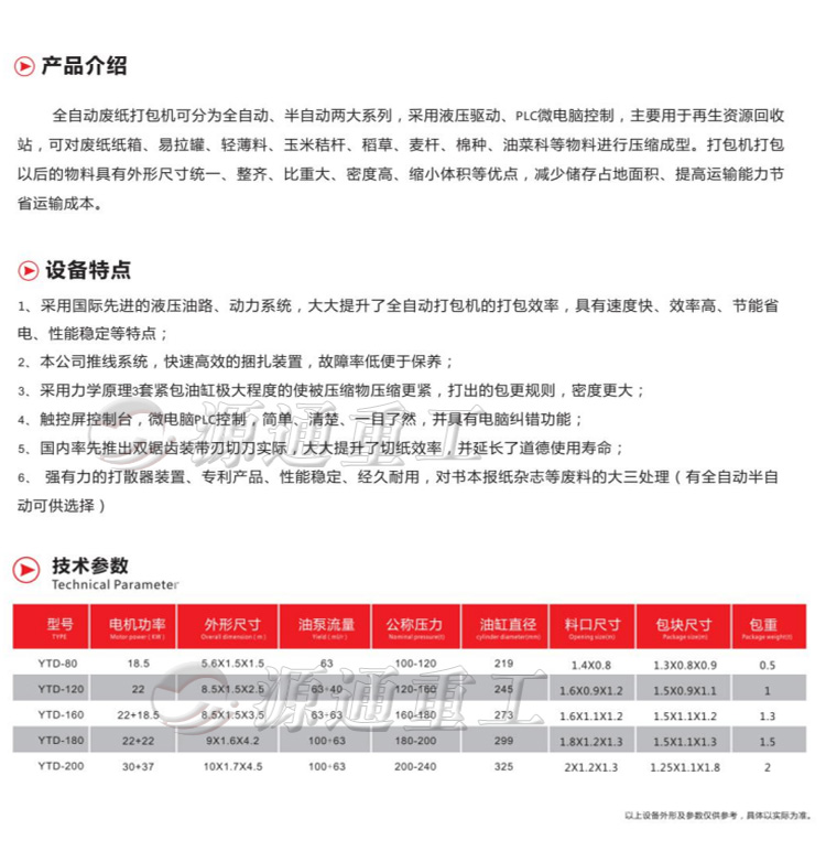 綜上所述,液壓廢紙打包機具有廣闊的市場前景和發展潛力,是一種非常有前途的環保設備。